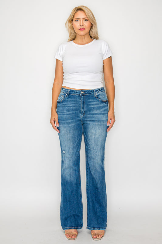 Regular price $68.00 USDRegular priceUnit price / perSale price $68.00 USDThese premium high-rise flare jeans combine style and comfort with their classic medium wash and subtle distressing. Made from quality denim with just the right amount of stretch, these jeans feature a flattering high-rise waist and flared leg silhouette. The traditional 5-pocket design offers practical storage while maintaining a sleek appearance. Perfect for casual or dressed-up occasions, these jeans pair well with any top while providing all-day comfort and durability.